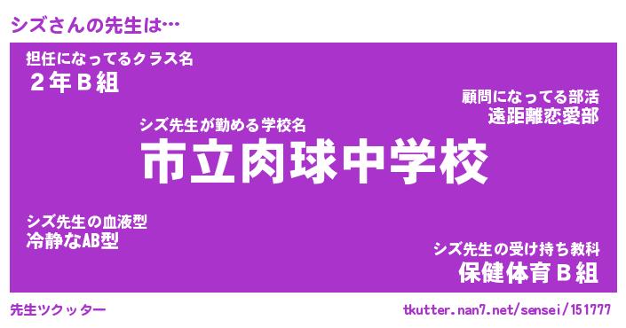 | 意味不明あだ名 | 『ペロリンシズ』『シズフォーエバー』 |