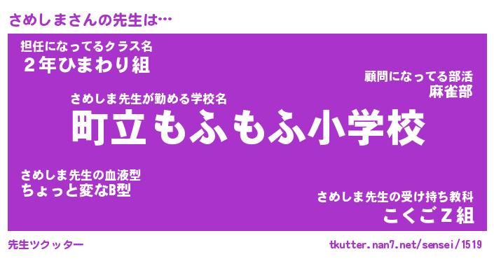 | 意味不明あだ名 | 『ペロリンさめしま』『永久保存さめしま』 |
