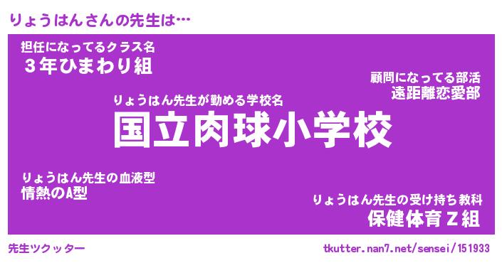 | ファンタジー風あだ名 | 『リョフェル』『エターナルリョウハンー』 |
