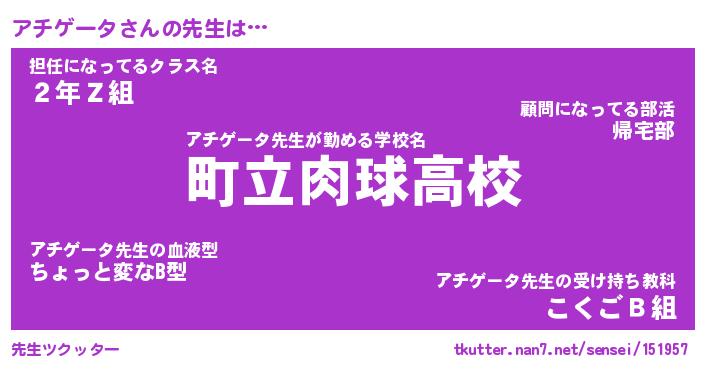 | ファンタジー風あだ名 | 『アチフェル』『エターナルアチゲーター』 |