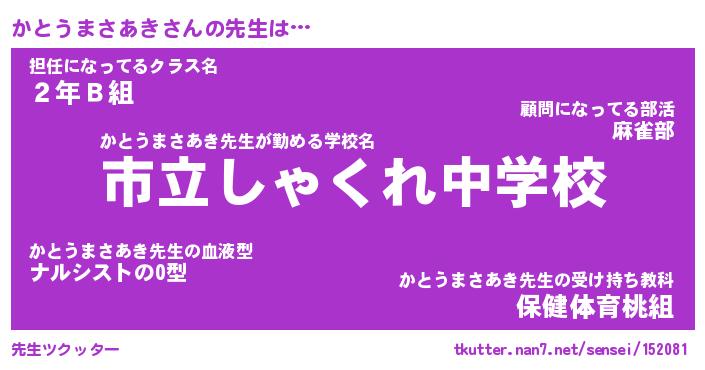 | 肩書あだ名 | 『かとうまさあき御曹司』 |