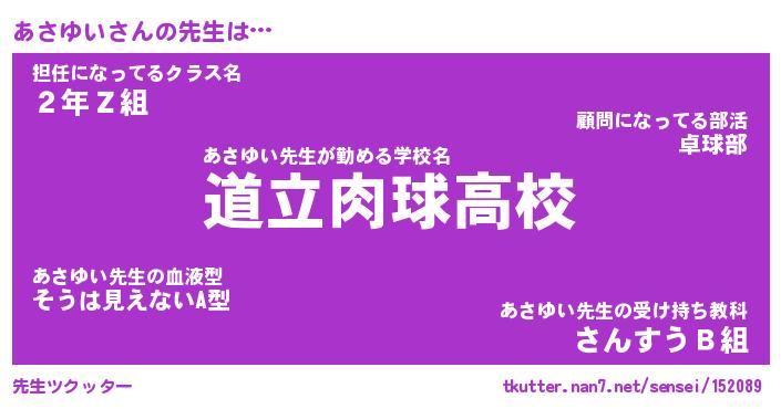 | 意味不明あだ名 | 『ペロリンあさゆい』『永久保存あさゆい』 |