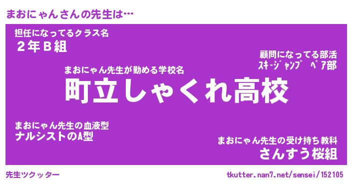 | 肩書あだ名 | 『まおにゃん御曹司』『まおにゃん担任』 |