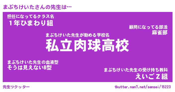 | 欧米人風あだ名 | 『マイケルまぶちけいた』 |