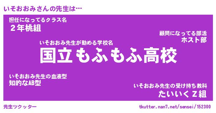| ファンタジー風あだ名 | 『イソフェル』『エターナルイソオオミー』 |