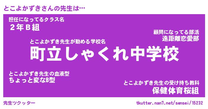 | ヒーロー風カッコイイあだ名 | 『スーパートコヨカズキ』『炎刃騎士トコ』 |