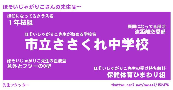| ヘコむあだ名 | 『ほそもー』『牛乳』『ほそ太郎』 |