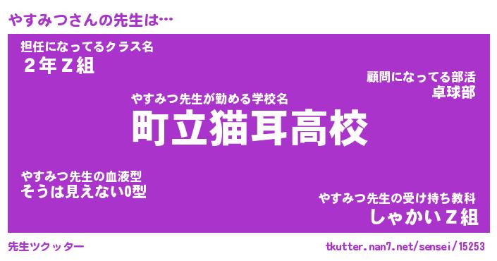 | ファンタジー風あだ名 | 『ヤスフェル』『エターナルヤスミツー』 |
