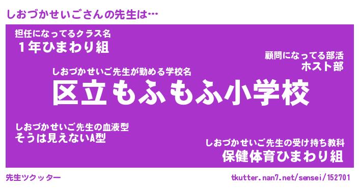 | ヘコむあだ名 | 『しおにゅー』『牛乳』『しおっ子』 |