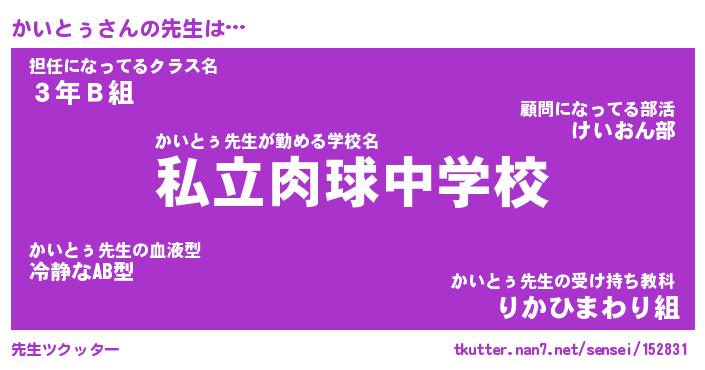 | 意味不明あだ名 | 『ペロリンかいとぅ』『永久保存かいとぅ』 |