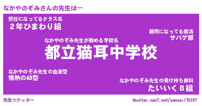 | ヒーロー風カッコイイあだ名 | 『スーパーナカヤノゾミ』『魔戒騎士ナカ』 |