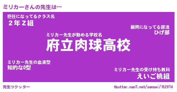 | 意味不明あだ名 | 『ペロリンミリカー』『永久保存ミリカー』 |