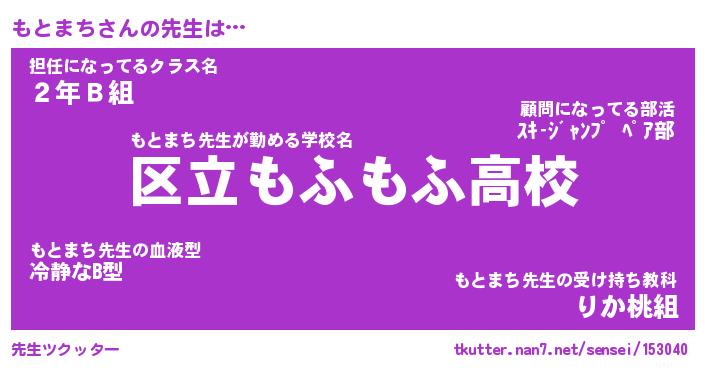| ファンタジー風あだ名 | 『モトフェル』『エターナルモトマチー』 |