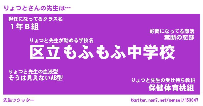 | 意味不明あだ名 | 『ペロリンりょつと』『永久保存りょつと』 |