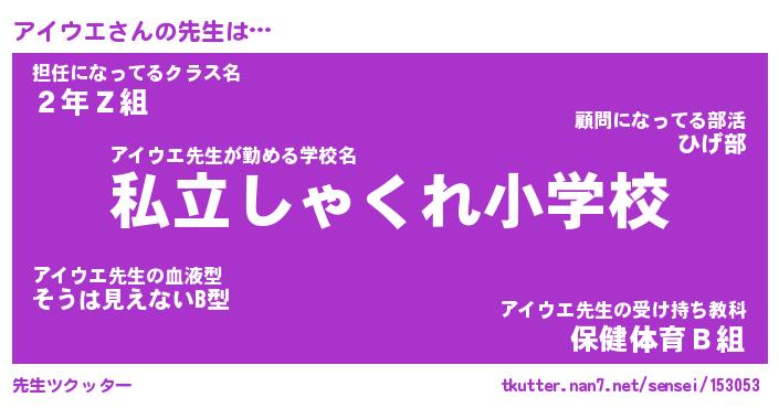 | 意味不明あだ名 | 『ペロリンアイウエ』『永久保存アイウエ』 |