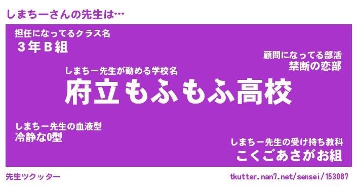 | ファンタジー風あだ名 | 『シマフェル』『エターナルシマチーー』 |