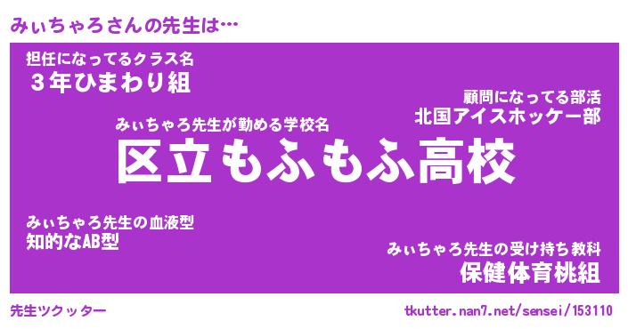| ファンタジー風あだ名 | 『ミィフェル』『エターナルミィチャロー』 |