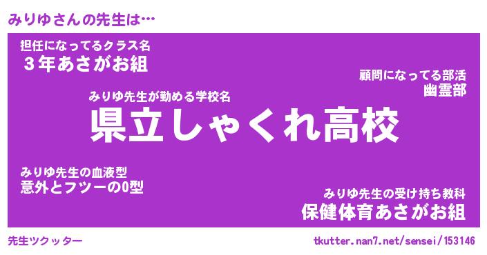 | 伝説のあだ名 | 『不死鳥のスナイパーみりゆ』 |