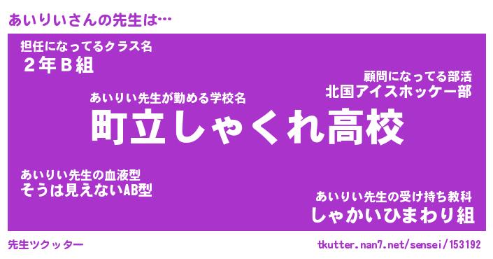 | 意味不明あだ名 | 『ペロリンあいりい』『永久保存あいりい』 |