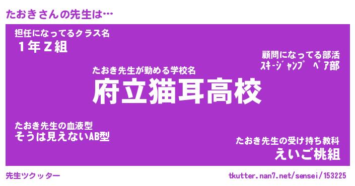 | ポケモン風あだ名 | 『タオチュウ』『タオキダネ』 |