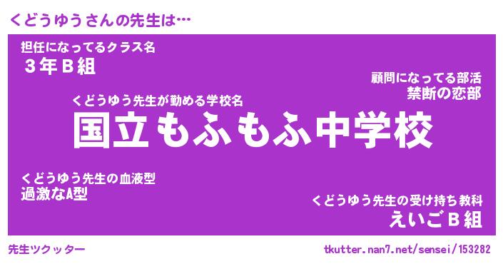 | ファンタジー風あだ名 | 『クドフェル』『エターナルクドウユウー』 |