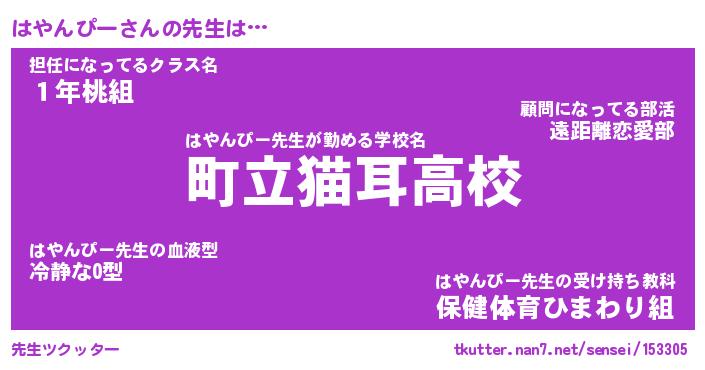 | ファンタジー風あだ名 | 『ハヤフェル』『エターナルハヤンピーー』 |