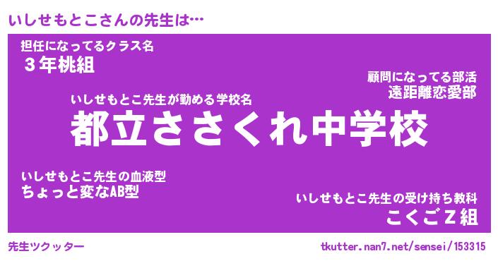 | 意味不明あだ名 | 『ペロリンいしせもとこ』 |