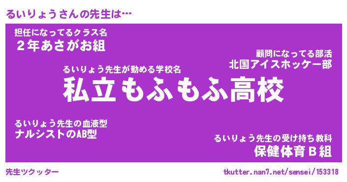 | ヘコむあだ名 | 『るいにゅー』『なまこ酢』『るいお』 |