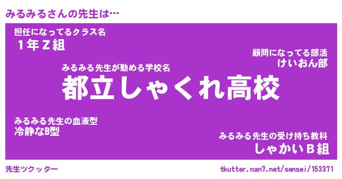 | ヘコむあだ名 | 『みるっふぃ~』『つくし』『みるお』 |