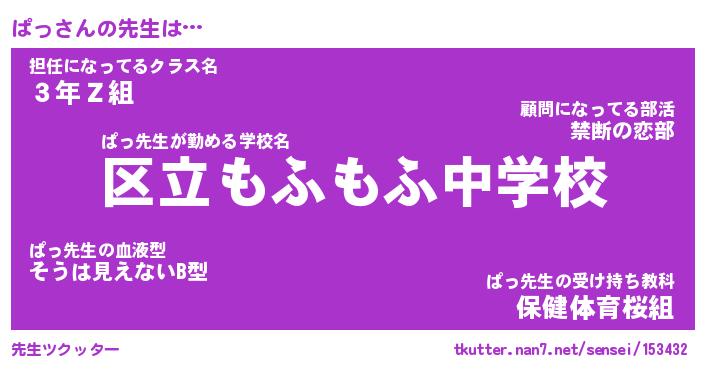 | ファンタジー風あだ名 | 『パッフェル』『エターナルパッー』 |