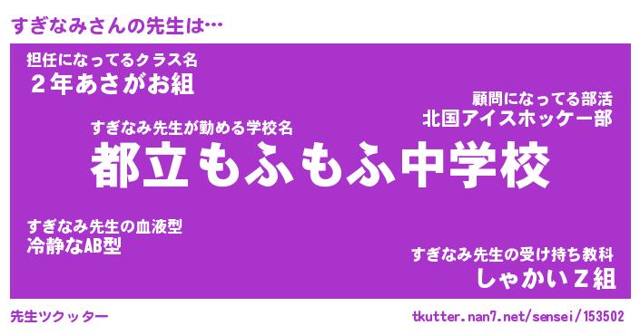 | ヘコむあだ名 | 『すぎにゅー』『なまこ酢』『すぎを』 |
