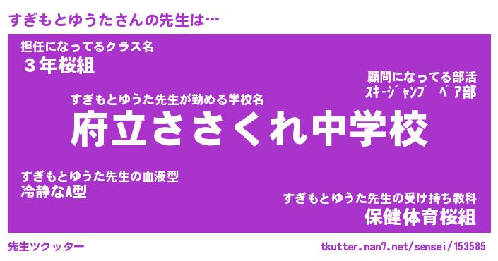 | 伝説のあだ名 | 『封印されしスナイパーすぎもとゆうた』 |