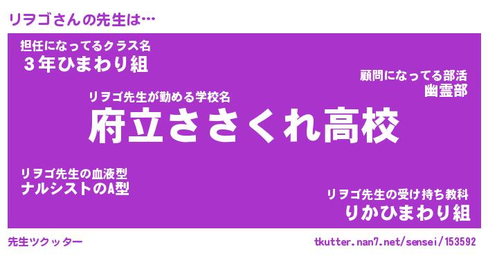 | 意味不明あだ名 | 『ペロリンリヲゴ』『リヲゴフォーエバー』 |
