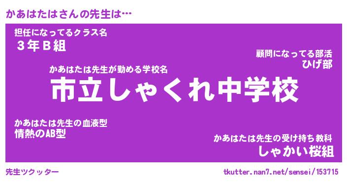 | 伝説のあだ名 | 『伝説のスナイパーかあはたは』 |