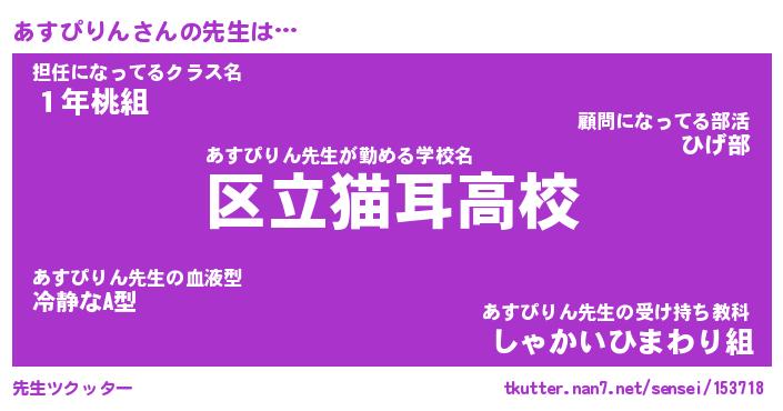 | ファンタジー風あだ名 | 『アスフェル』『エターナルアスピリンー』 |