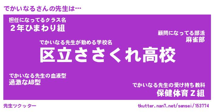 | ヘコむあだ名 | 『でかもー』『なまこ酢』『でか太郎』 |