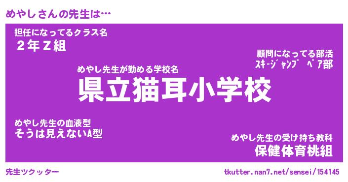 | ポケモン風あだ名 | 『メヤチュウ』『メヤシダネ』 |