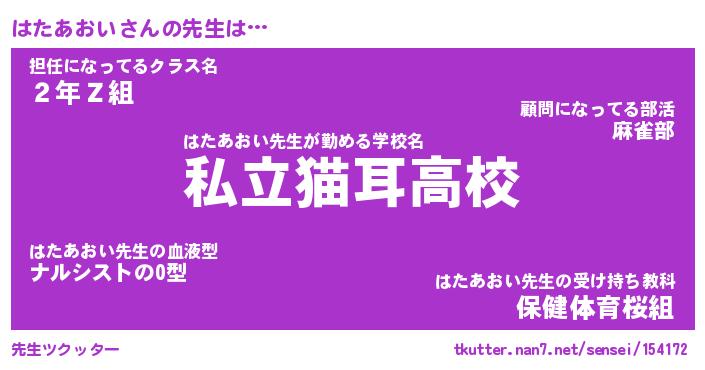 | ファンタジー風あだ名 | 『ハタフェル』『エターナルハタアオイー』 |