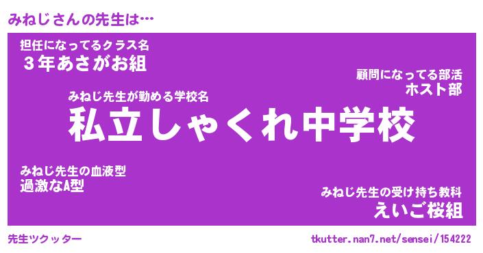 | 意味不明あだ名 | 『ペロリンみねじ』『みねじフォーエバー』 |