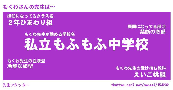 | 意味不明あだ名 | 『ペロリンもくわ』『もくわフォーエバー』 |