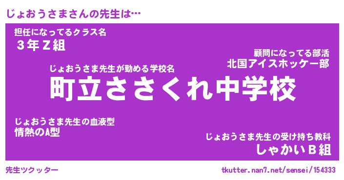 | 伝説のあだ名 | 『封印されしスナイパーじょおうさま』 |