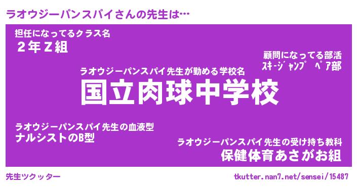 | 意味不明あだ名 | 『ペロリンラオウジーパンスパイ』 |