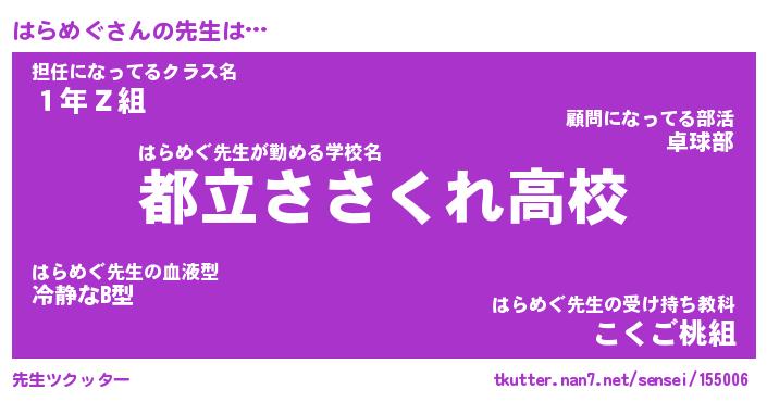 | 意味不明あだ名 | 『ペロリンはらめぐ』『永久保存はらめぐ』 |
