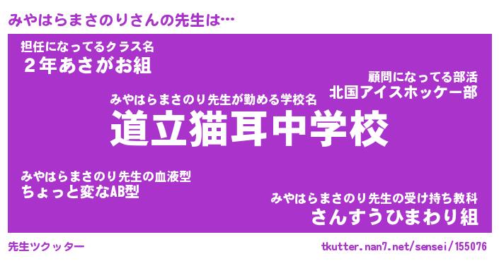 | ヘコむあだ名 | 『みやにー』『豆乳』『みやっ子』 |