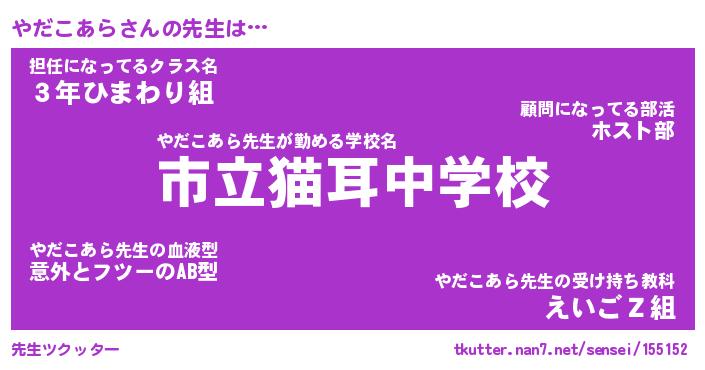 | ヘコむあだ名 | 『やだにー』『豆乳』『やだを』 |