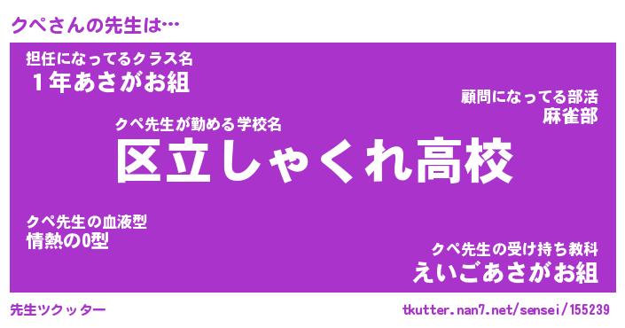 | ファンタジー風あだ名 | 『クペフェル』『エターナルクペー』 |