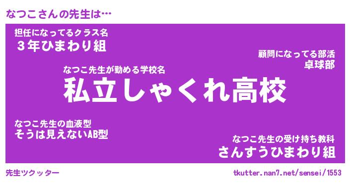 | 伝説のあだ名 | 『伝説のスナイパーなつこ』 |