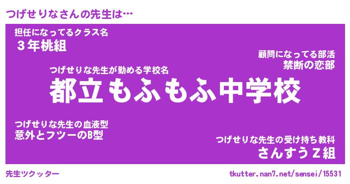 | ファンタジー風あだ名 | 『ツゲフェル』『エターナルツゲセリナー』 |