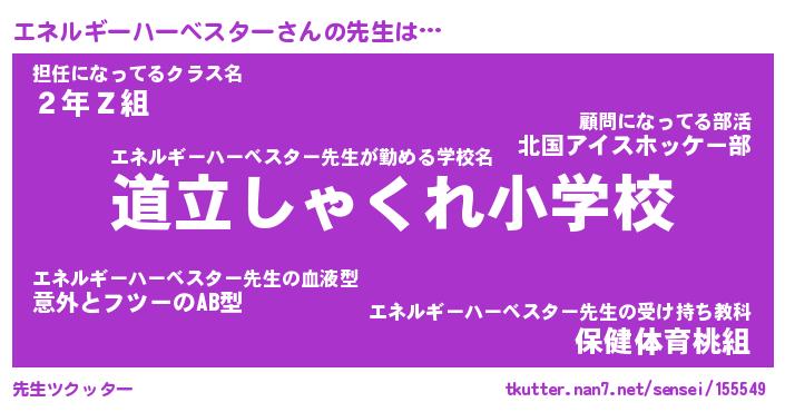 | 伝説のあだ名 | 『不死鳥のスナイパーエネルギーハーベスター』 |
