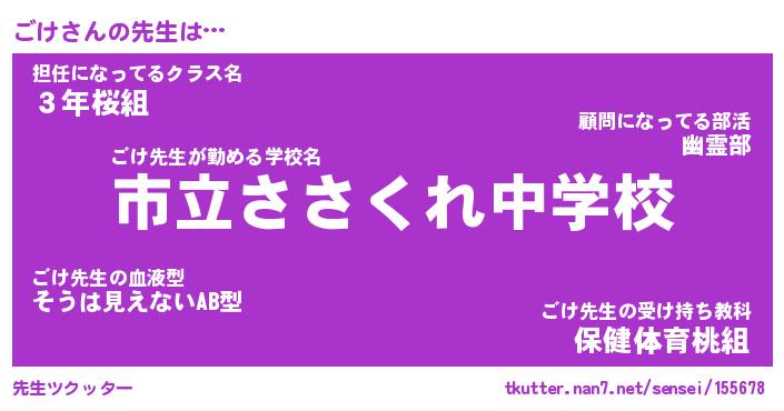 | 伝説のあだ名 | 『伝説のスナイパーごけ』 |